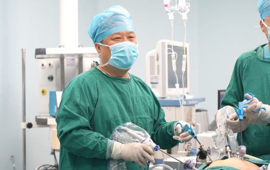 胃腸外科副主任錢國武在進行三孔腹腔鏡NOSES手術